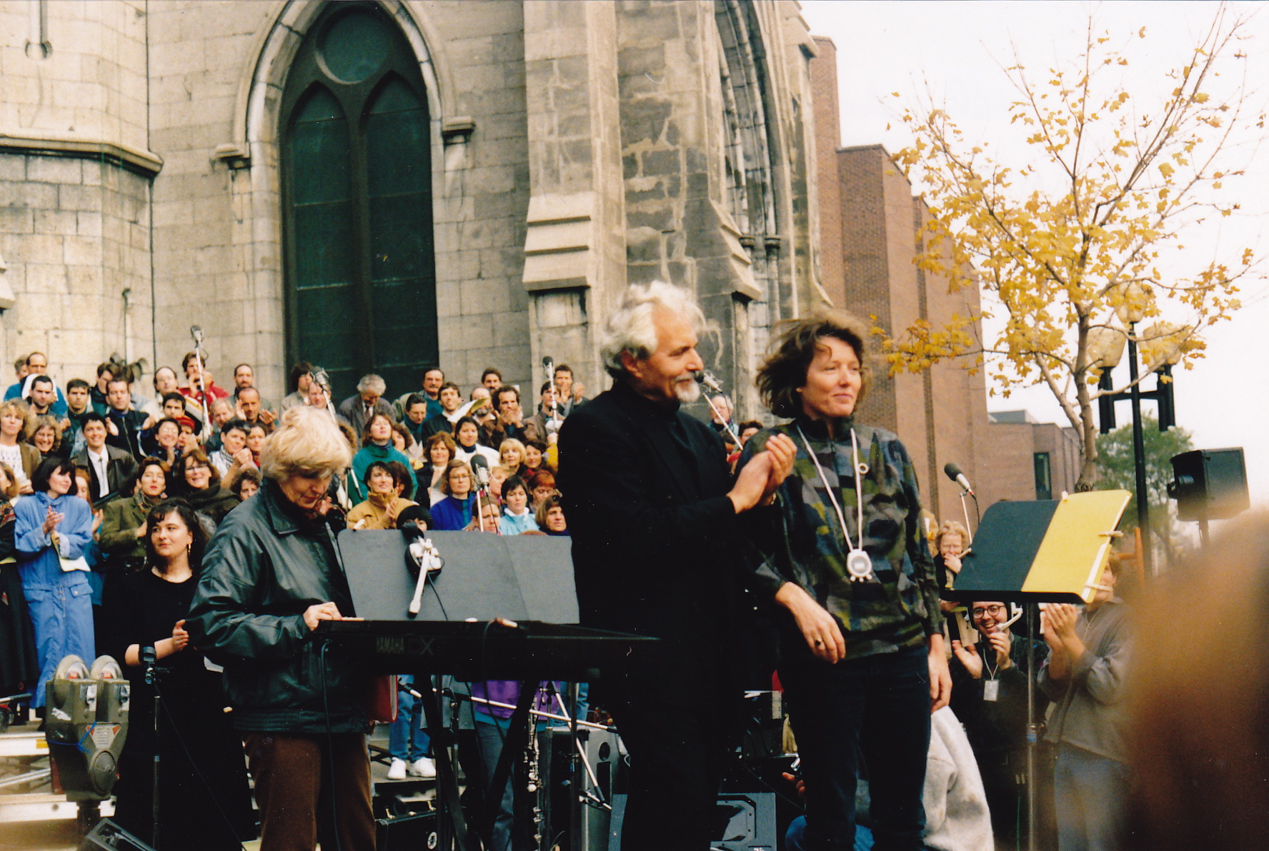 On the unusually balmy Saturday of Nov. 3, 1990, école polytechnique was premiered along with A Call to Prayer by Alvin Curran and Alma Mater by Claude-Paul Gauthier in a stunning outdoor performance in Montreal during New Music America/Montréal Musiques Actuelles 1990. The piece was written for the eight church bells in the bell tower of the Université du Québec a Montréal (UQAM), as well as the UQAM choir, directed by Miklós Takács. Additional performers were Lori Freedman, bass clarinet; Lisa Rodrigue and Véronique Lucignano, trumpets; Daniel Fortin, percussion; and Johanne Latreille, bells. It was commissioned by New Music America/Montréal Musiques Actuelles 1990. I would like to thank Hal Wake and Jeffrey Dvorkin of CBC Radio, André Rhéaume and Thérèse Champagne of Radio-Canada for supplying the newscast of the killings, as well as Lori Freedman, Sal Ferreras and Tom Parriot for consultation on the instrumental parts.
